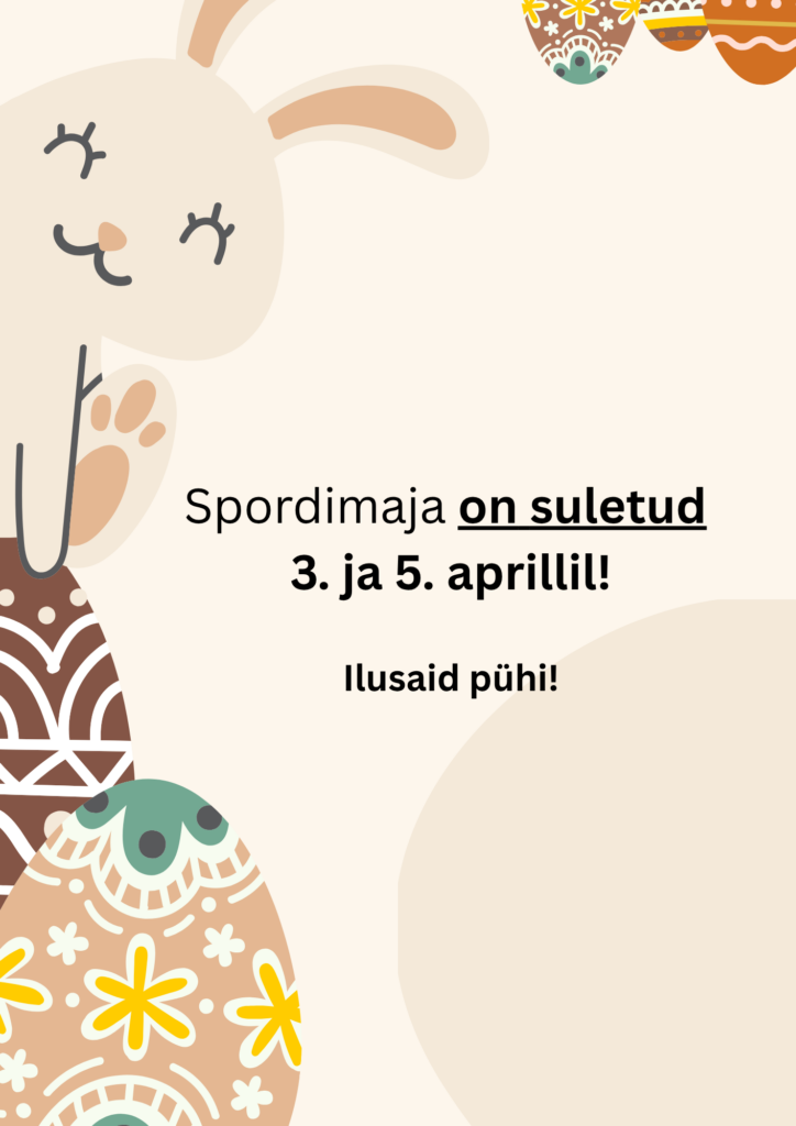 Kose Spordimaja on 3. ja 5. aprillil suletud!